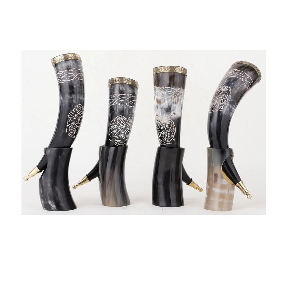 Support à bière en corne viking de haute qualité, fabriqué à la main, écologique, option de logo personnalisé, matériaux en corne naturelle, parfait pour boire