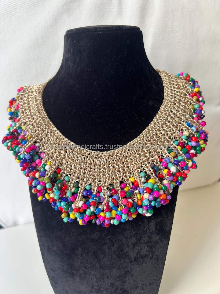 Collier brodé à la main de haute qualité avec perles de verre parfait pour les tenues traditionnelles, bohèmes et modernes