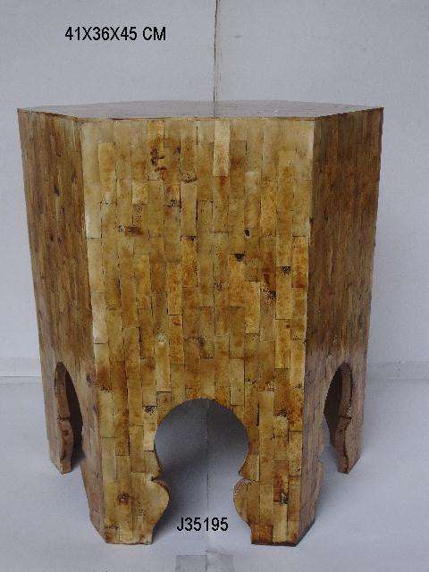 Tabouret en os fait à la main de haute qualité Tabouret hexagonal en incrustation d'os de buffle également disponible dans d'autres mosaïques Tabouret décoratif pour la maison