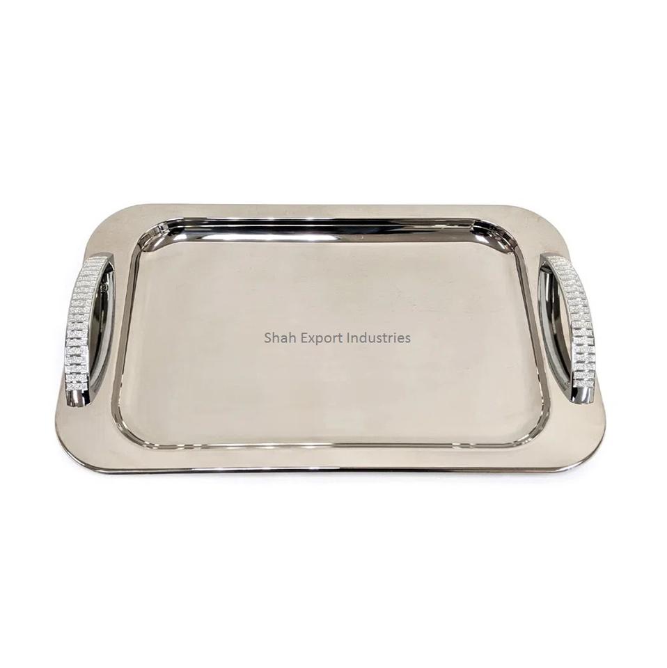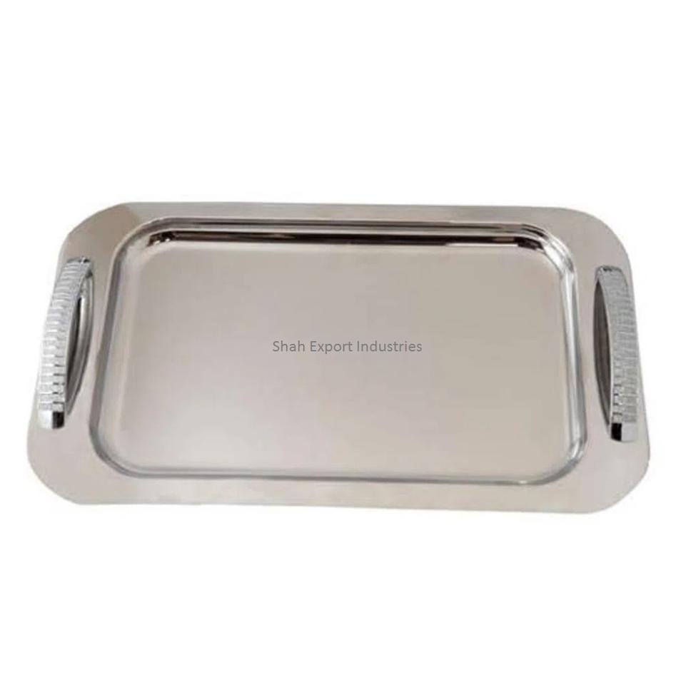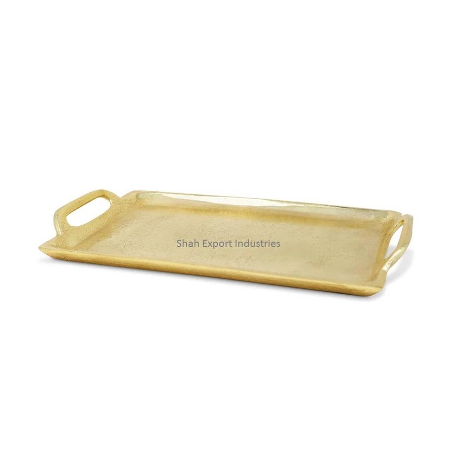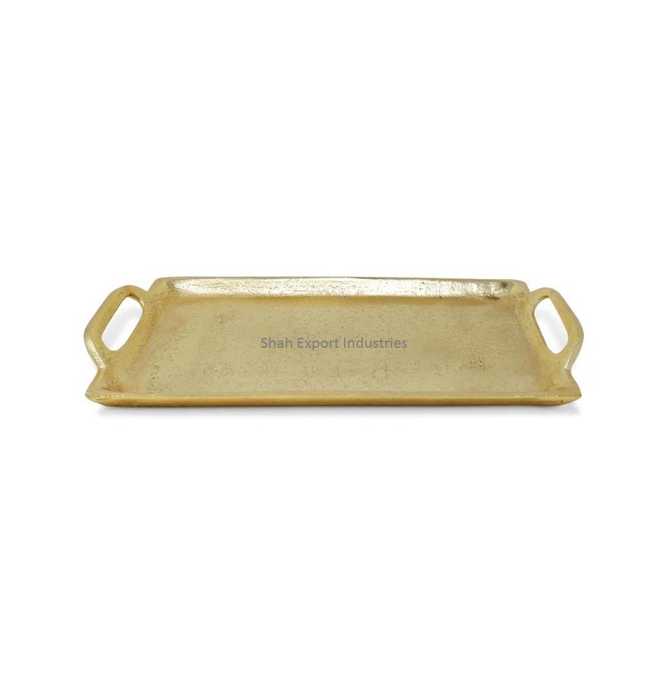 Plateau de service en métal de qualité commerciale fait à la main de haute qualité plaqué or bordure en relief poignées maison Table à manger nourriture Dessert