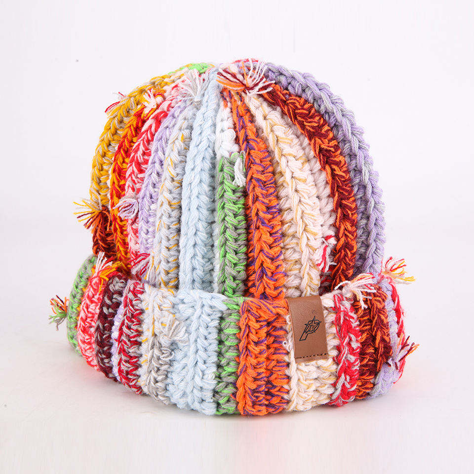 Bonnets d'hiver en tricot crocheté faits main de haute qualité, personnalisés en noir avec logo personnalisé et échantillon gratuit