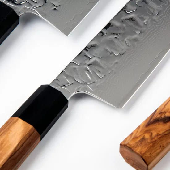 Ensemble de couteaux de cuisine ambidextres en acier damas VG10 fait à la main de haute qualité avec manche en bois d'olivier