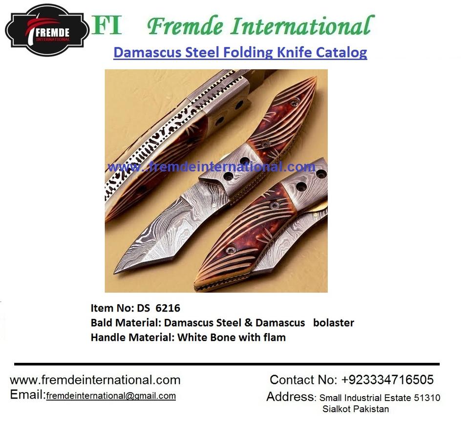 Couteau pliant en acier damas fait main de haute qualité avec poignée en os Applications de chasse industrielle Personnalisation OEM prise en charge