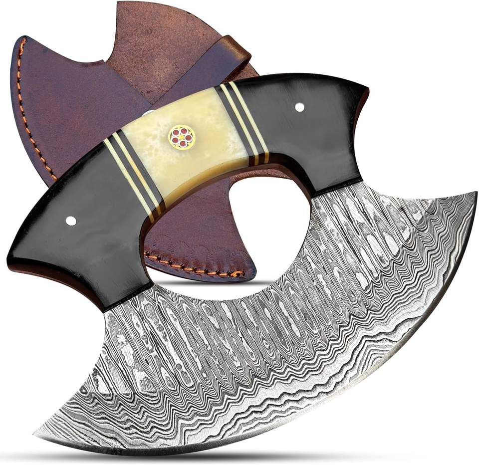 Couteau de chef de cuisine Ulu d'Alaska en acier de Damas