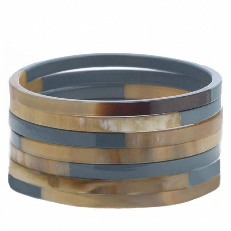 Ensemble de bracelet en corne de mode fait à la main de haute qualité Finition laquée grise mélangée et bleue naturelle