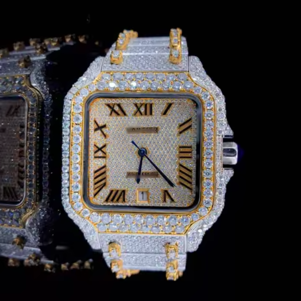 Montre Hip Hop Vvs Moissanite à mouvement automatique en acier inoxydable faite à la main de haute qualité en Inde