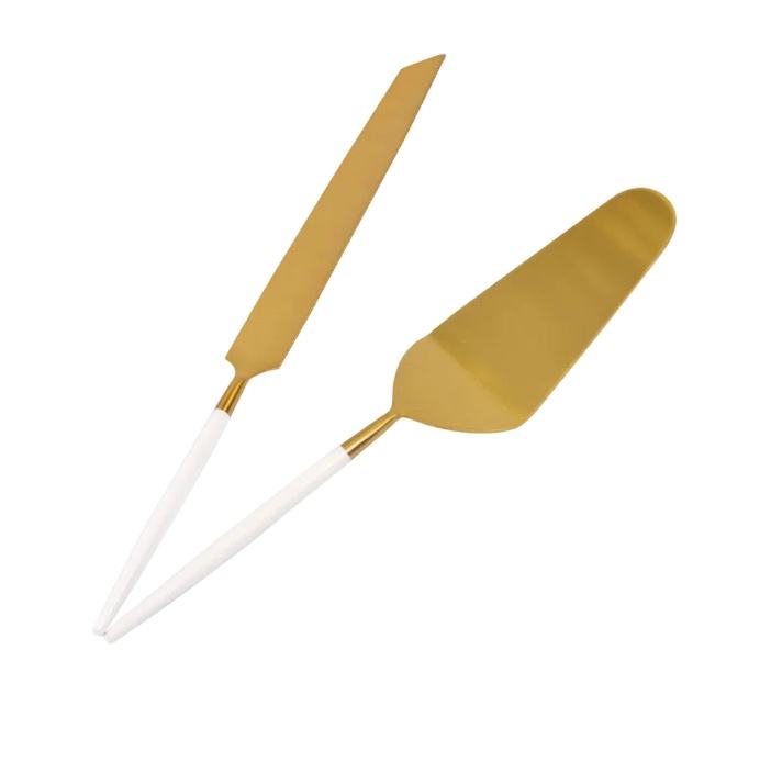 Ensemble couteau à gâteau et serveur en acier inoxydable en métal doré fait à la main de haute qualité couverts les plus vendus pour les mariages