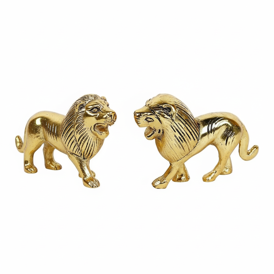 Ensemble de sculptures en métal Lion moderne fait à la main de haute qualité 2-Design unique cadeau décoratif d'anniversaire et de mariage écologique de luxe