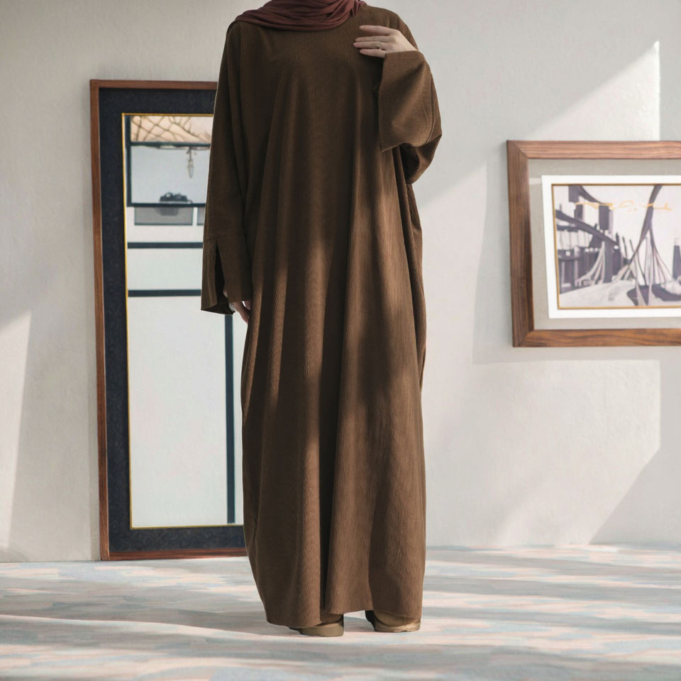 Robe maxi musulmane modeste en polyester épais de haute qualité, vêtements islamiques, abaya en velours côtelé d'hiver, manches fendues