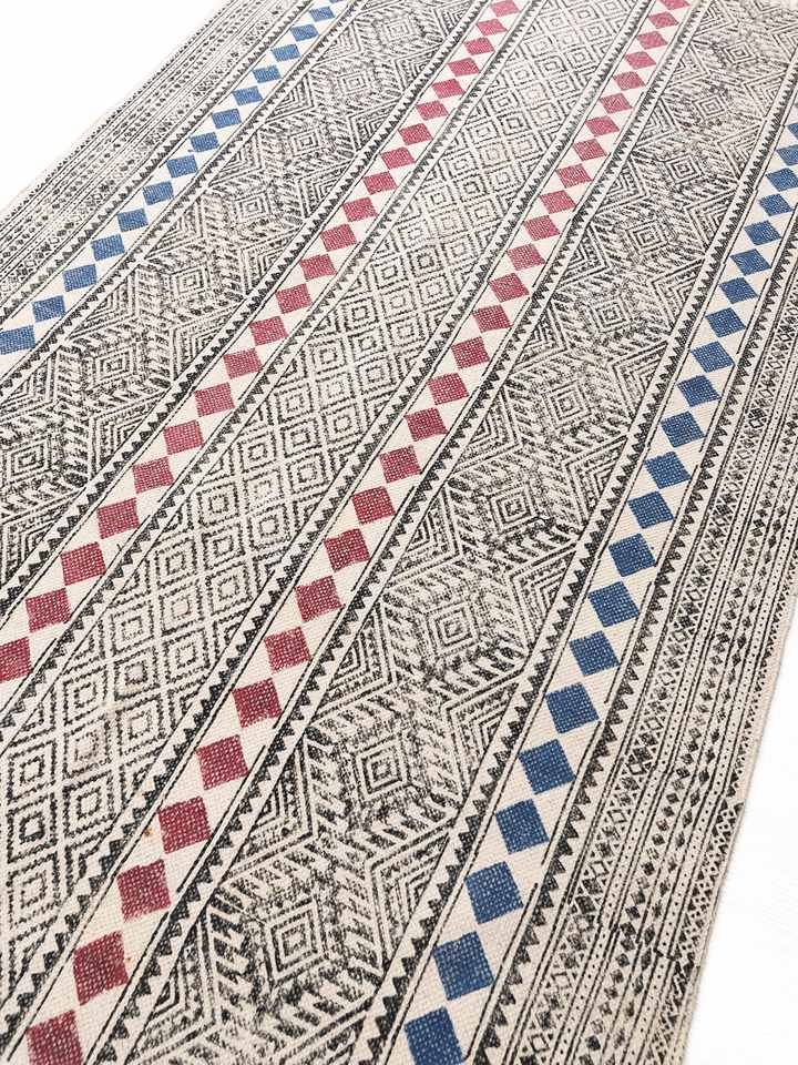 Lavable, Antidérapant, ACCEPTANT les animaux domestiques, Block-Printed Cotton Dhurry