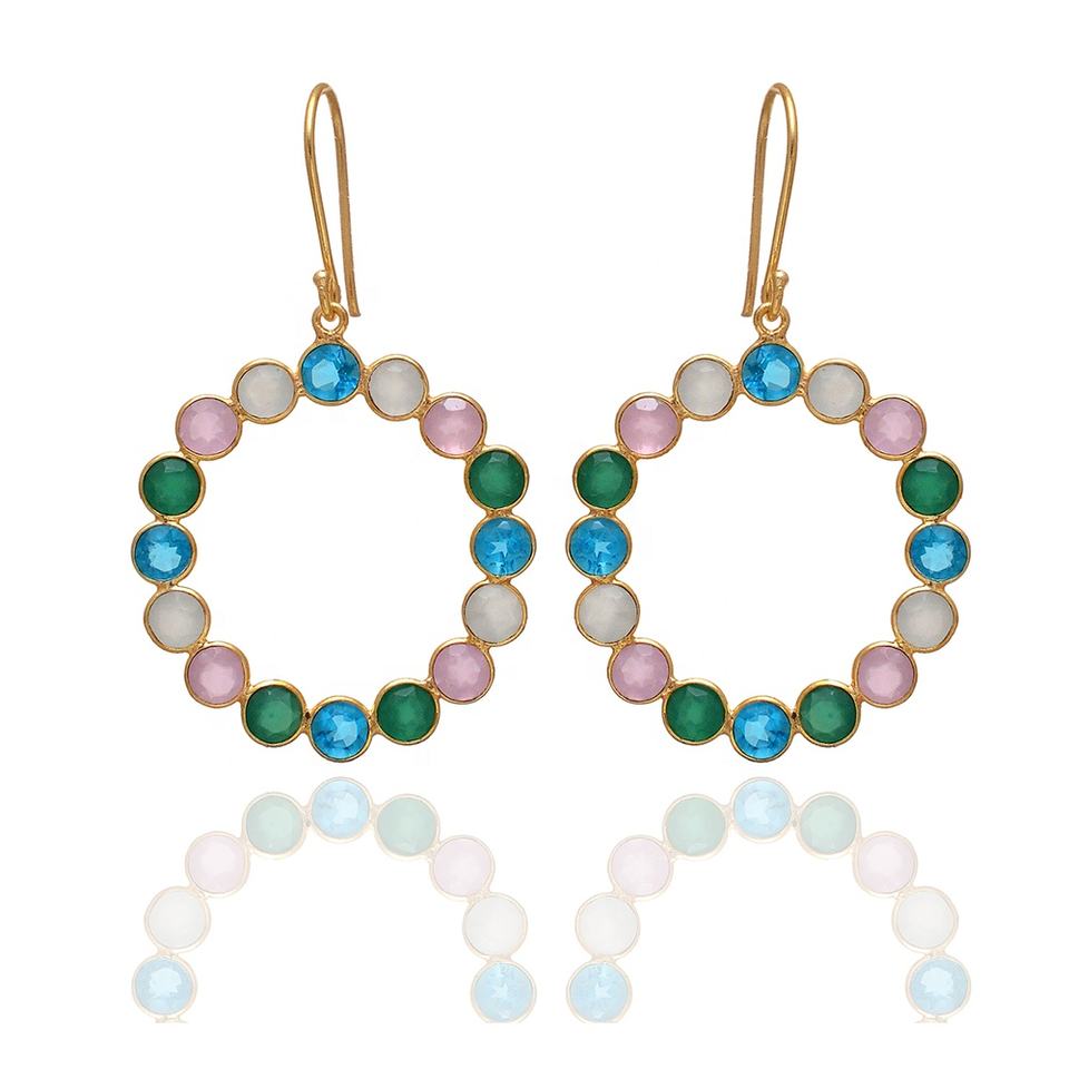 Boucles d'oreilles pendantes en argent sterling 925 plaqué or, ornées de chalcédoines naturelles multicolores, faites à la main, de haute qualité, cadeau idéal pour femme