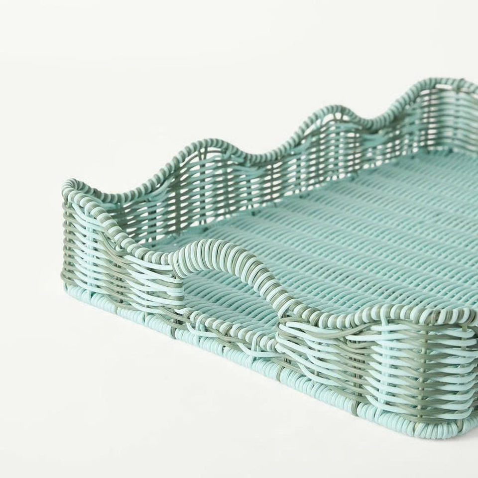 Plateau rectangulaire en rotin fait main de haute qualité, bord ondulé, plateau de service décoratif en osier, Vietnam