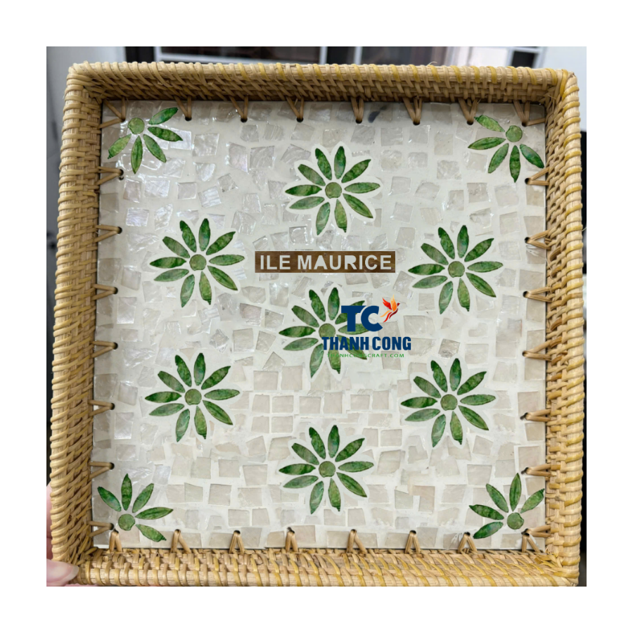 Plateau en rotin fait main de haute qualité avec plateau de service en gros MOP idéal pour les maisons côtières et les centres de villégiature à l'île Maurice