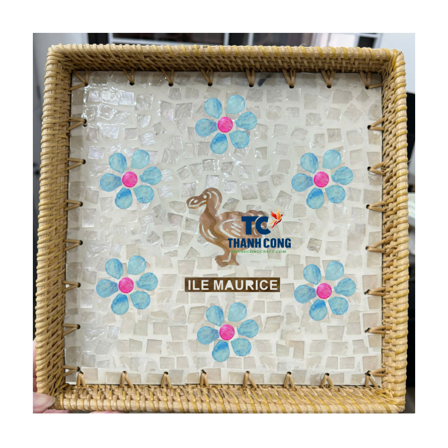 Plateau en rotin fait main de haute qualité avec plateau de service en gros MOP idéal pour les maisons côtières et les centres de villégiature à l'île Maurice
