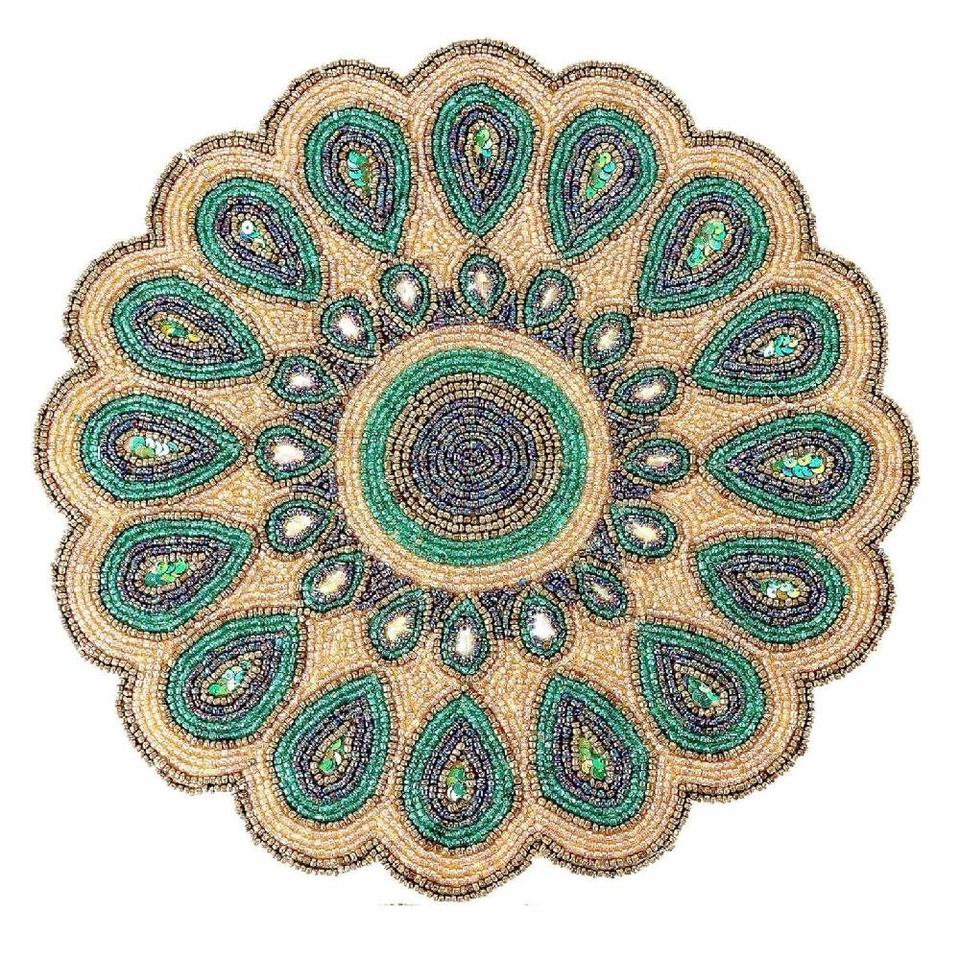 Napperon perlé rond fait à la main de haute qualité verre perlé chargeur plaque perles de verre tapis de Table pour Tables à manger et basses