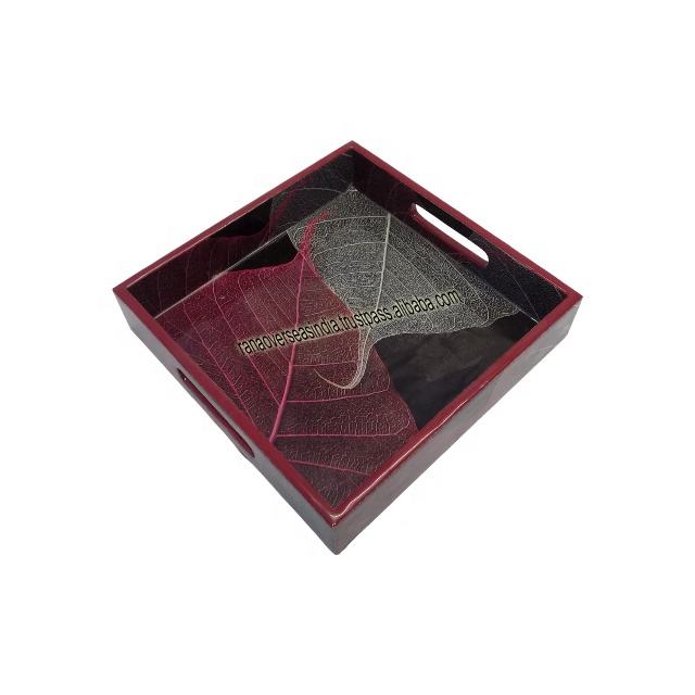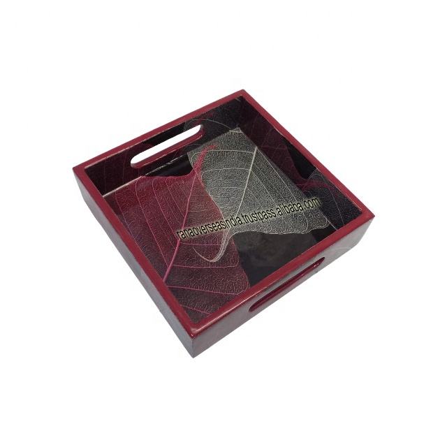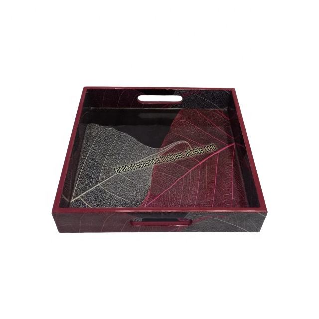 Plateau en bois d'impression de feuille de haute qualité dans la forme carréeNom du produit