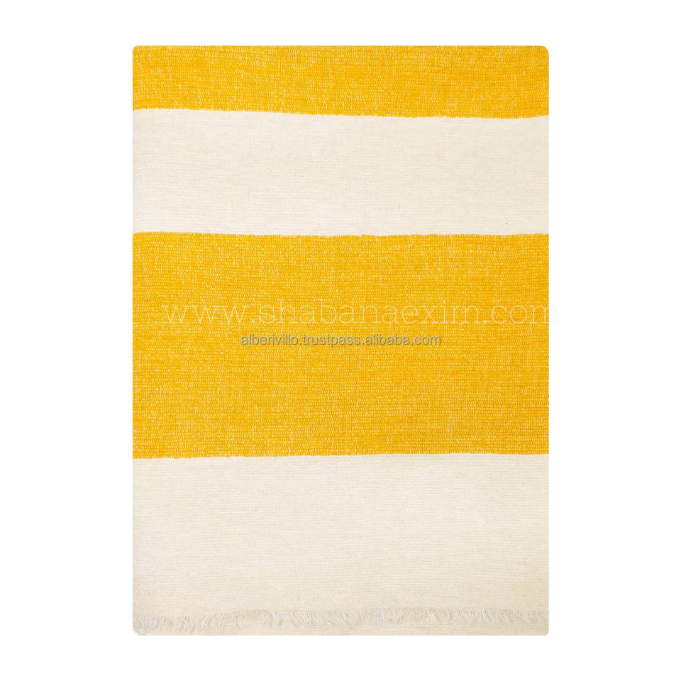 Jeté jaune en coton tissé à la main de haute qualité avec bordure à franges idéal pour le jet de tissage à la main textile à la maison contemporain