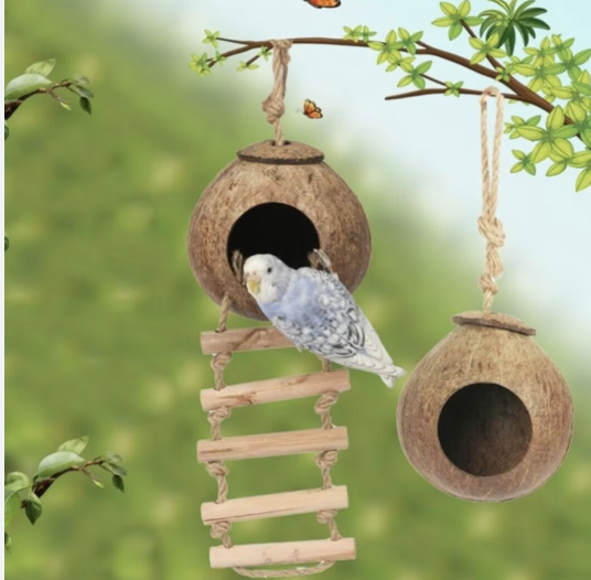 Maison d'oiseau en coquille de noix de coco suspendue de haute qualité en vrac disponible