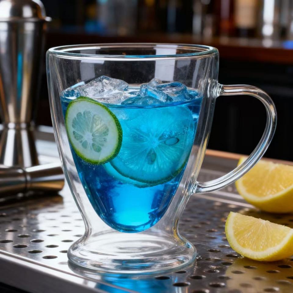 Mug en verre à double paroi isolé résistant à la chaleur de haute qualité, tasse à café en verre, tasse à bière avec poignée, tasse en verre à double paroi
