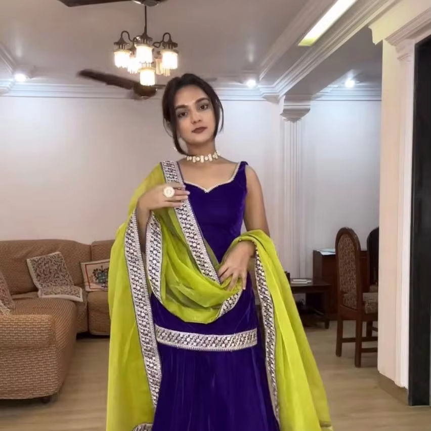 Product Name:Viscose Velvet Chine Stitch Embroidery Top Pant And Dupatta