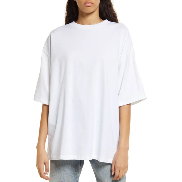 T-shirt d'été pour femme en velours côtelé floral, grande taille, coupe oversize, grammage lourd, qualité supérieure, vierge, personnalisable avec motif, écologique, manches classiques