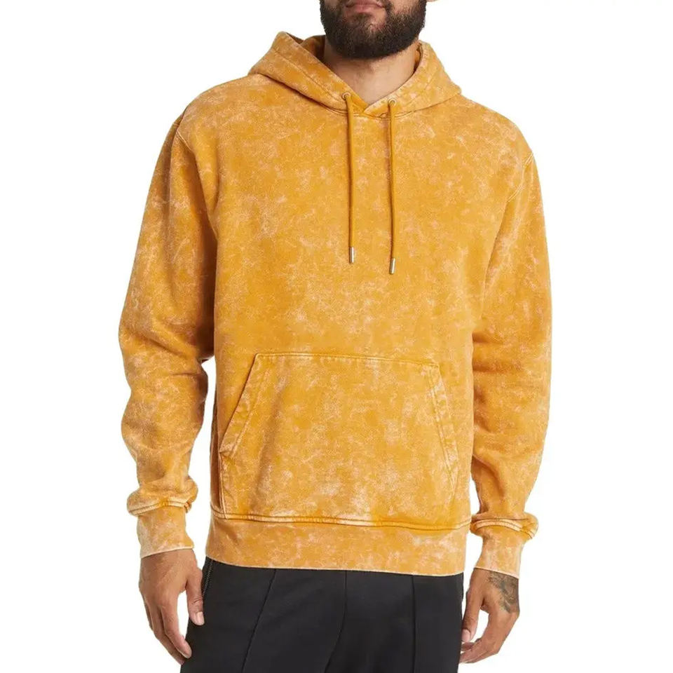 High Quality Heavyweight Acid Wash Vintage Hoodie for Men 100% Cotton Plus Size Winter Top Plain Dyed