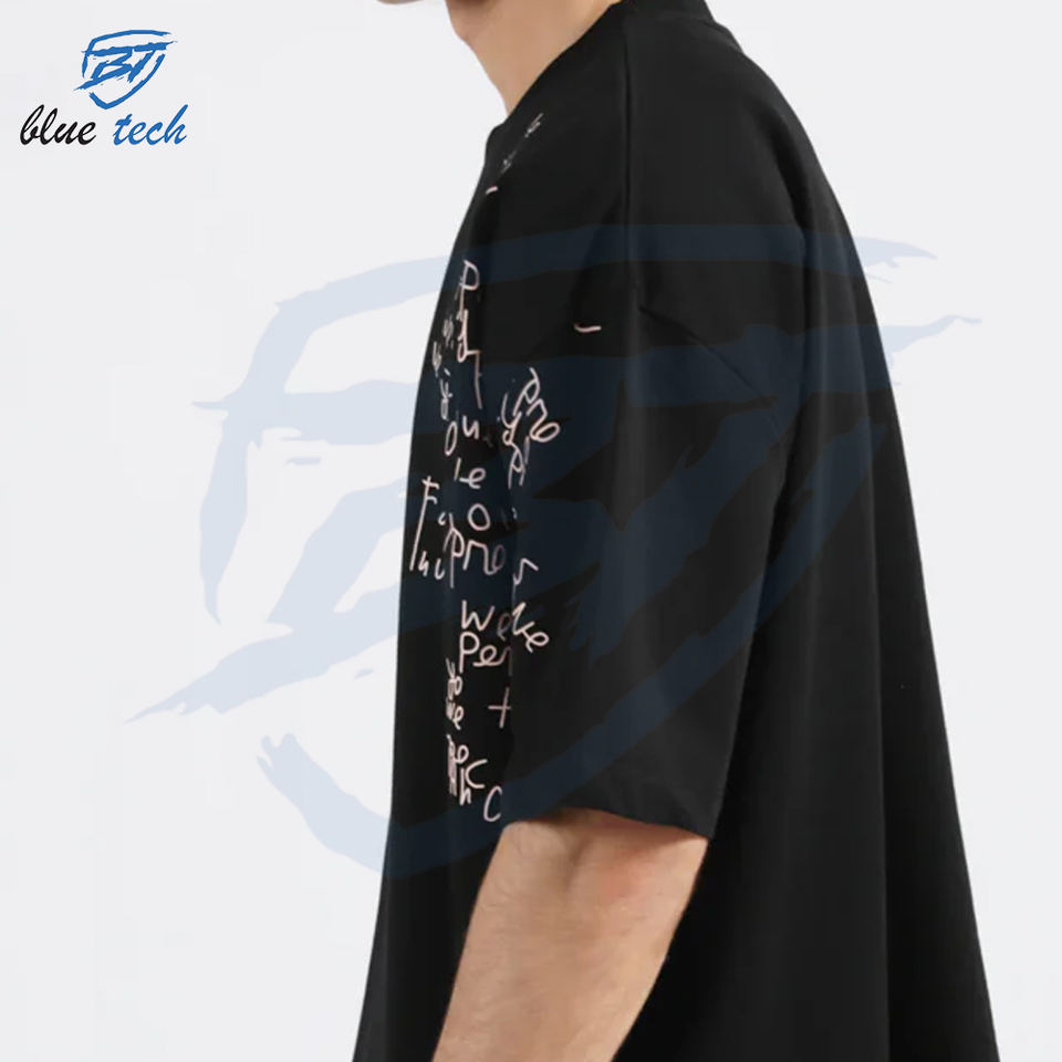T-shirt de haute qualité en coton graphique lourd avec logo personnalisé pour hommes T-shirt noir avec impression personnalisée pour hommes