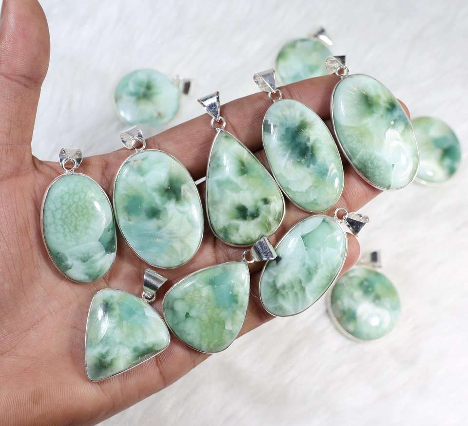 Product Name:Natural Hemimorphite Gemstone silver plated pendants