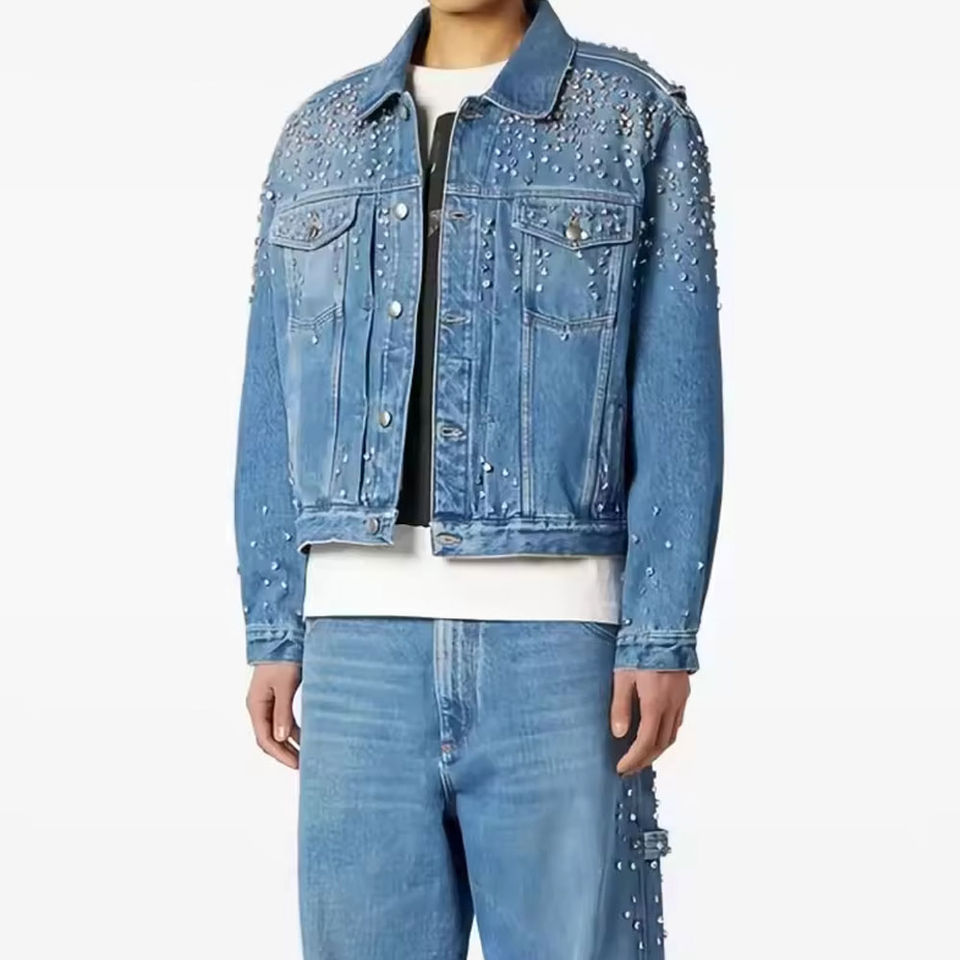Veste en jean pour homme de haute qualité avec strass, idéale pour l'extérieur