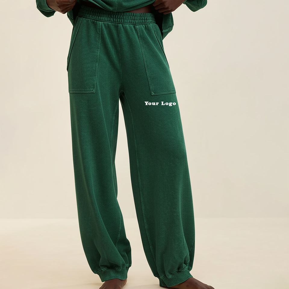 Pantalon de survêtement streetwear d'hiver en molleton polyester/coton de haute qualité, taille haute, avec empiècements à poches avant, respirant et à bas de pantalon côtelé