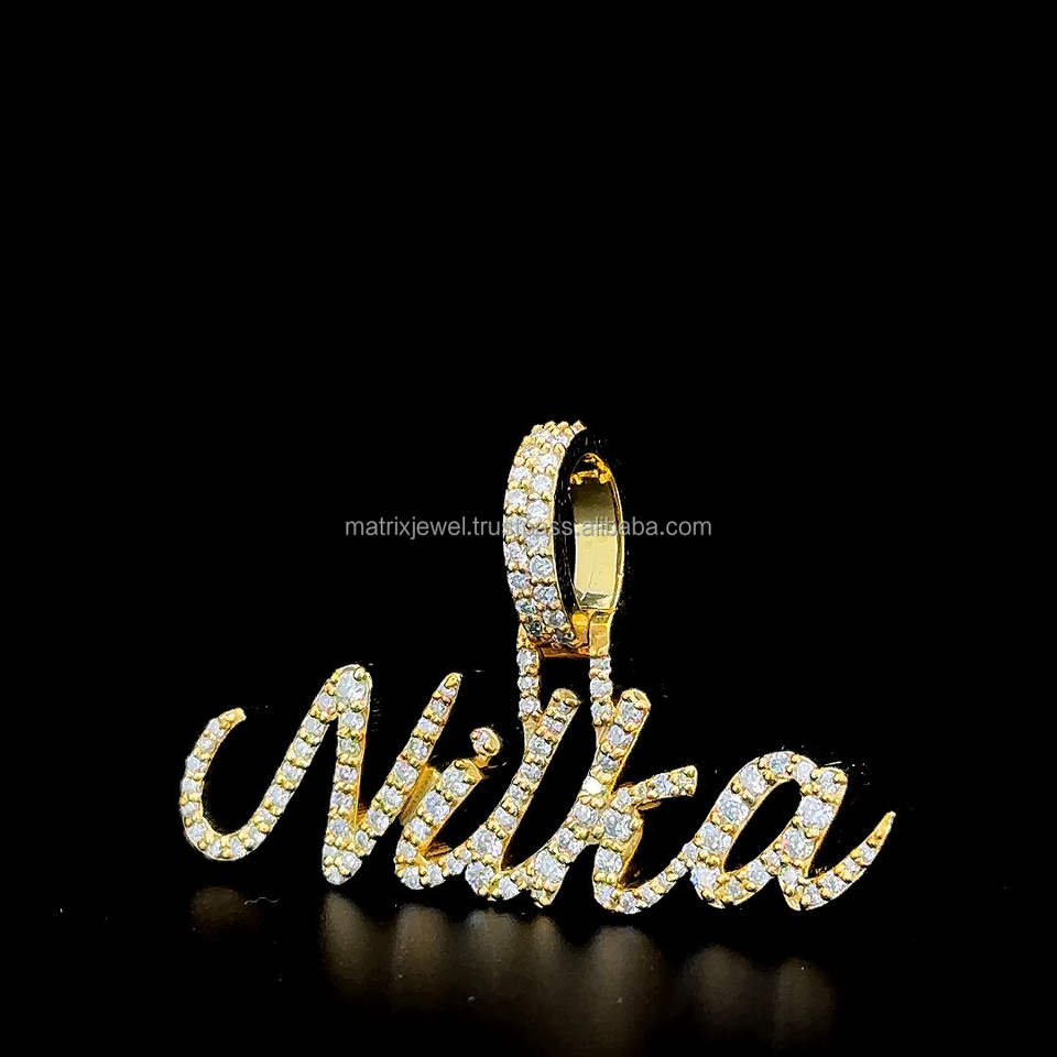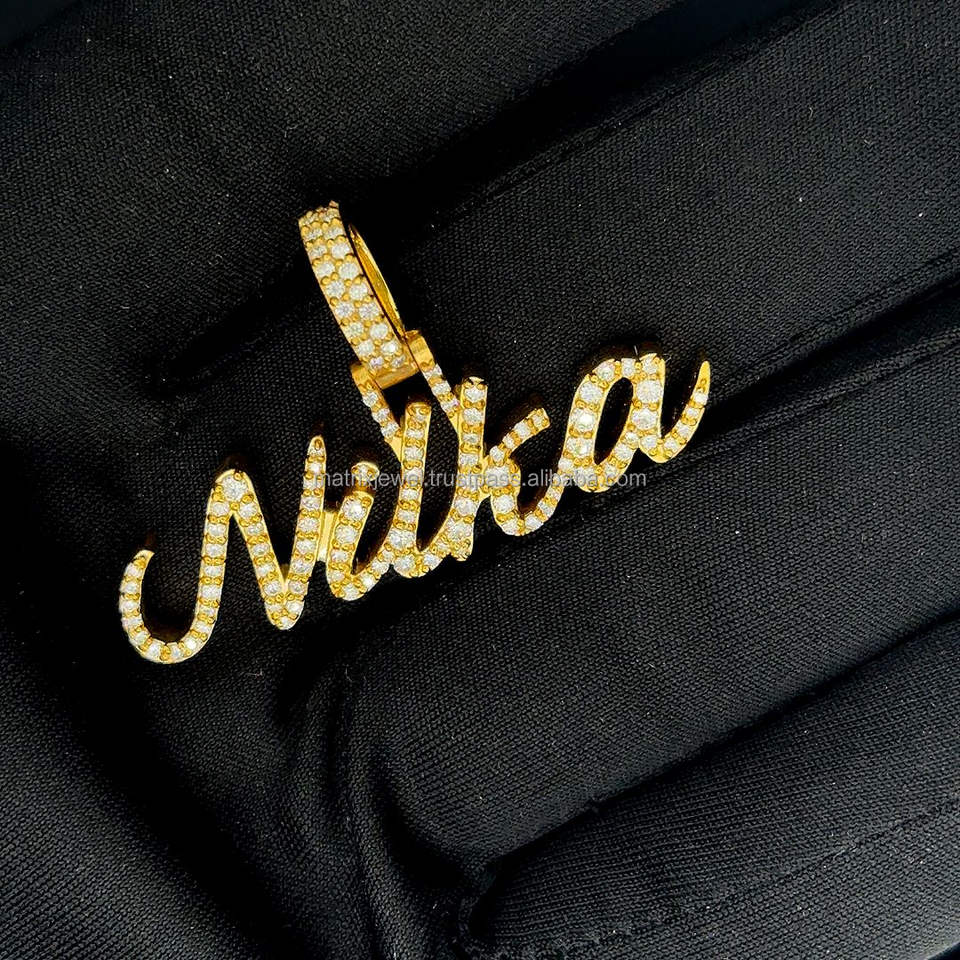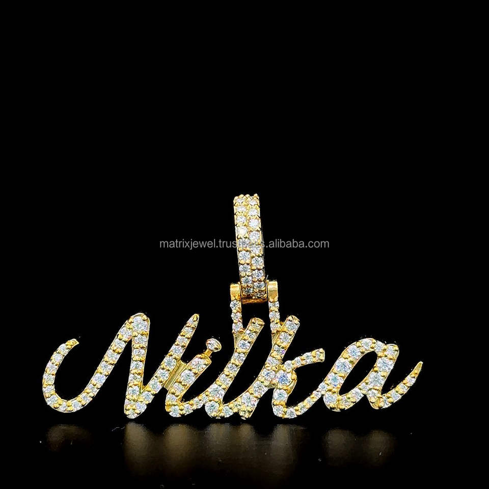 Haute qualité Hip Hop bijoux nom personnalisé pendentif glacé lettre couronne Bali Moissanite noir émail lettres cursives pendentif