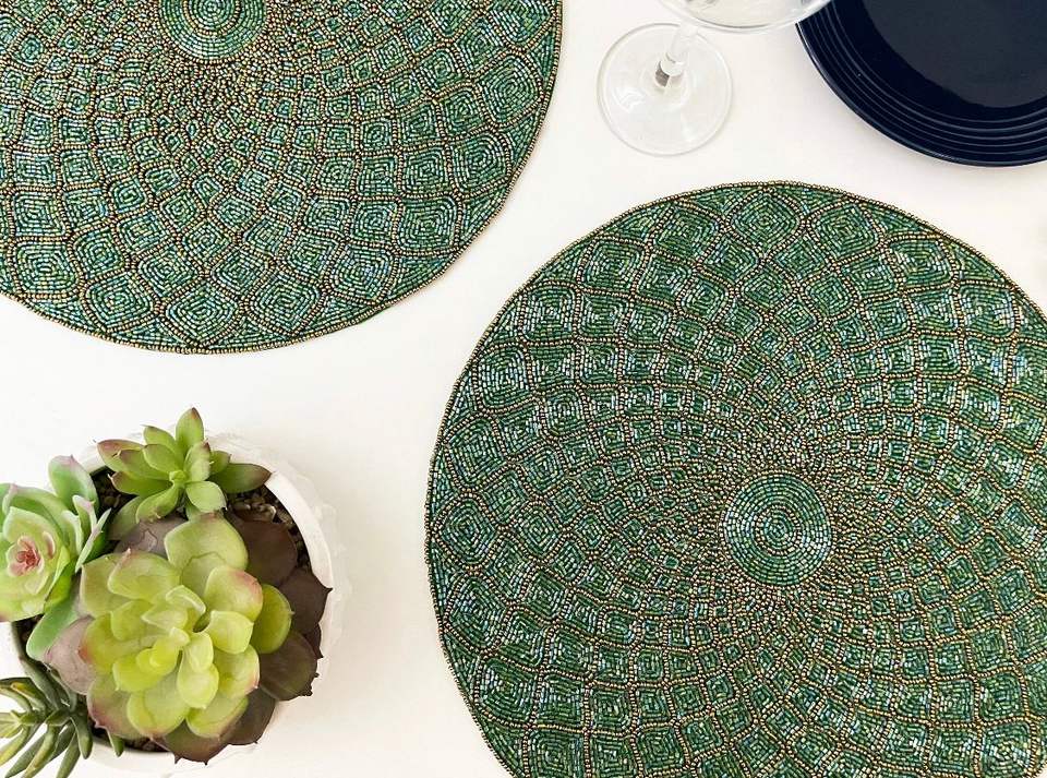 Haute qualité maison Bar décor rond verre caboteur motif ovale avec feutre perlé nacre pour tasse feuille maison usage Commercial