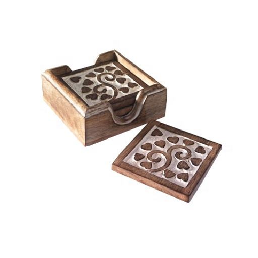 Haute Qualité Corne Os Forme Carrée Bois Résine Tapis Conception Unique En Bois Boisson Coaster Tasse Top Vente Maison Article Décoratif