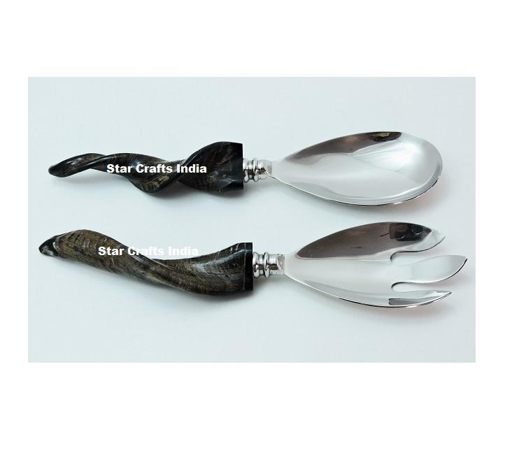 Ustensiles à salade en corne de haute qualité, faits à la main, écologiques, compatibles lave-vaisselle, design moderne pour les fêtes, en provenance d'Inde