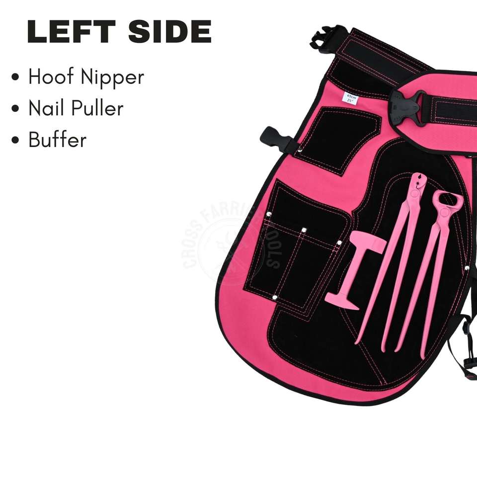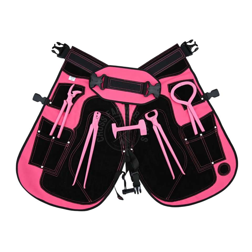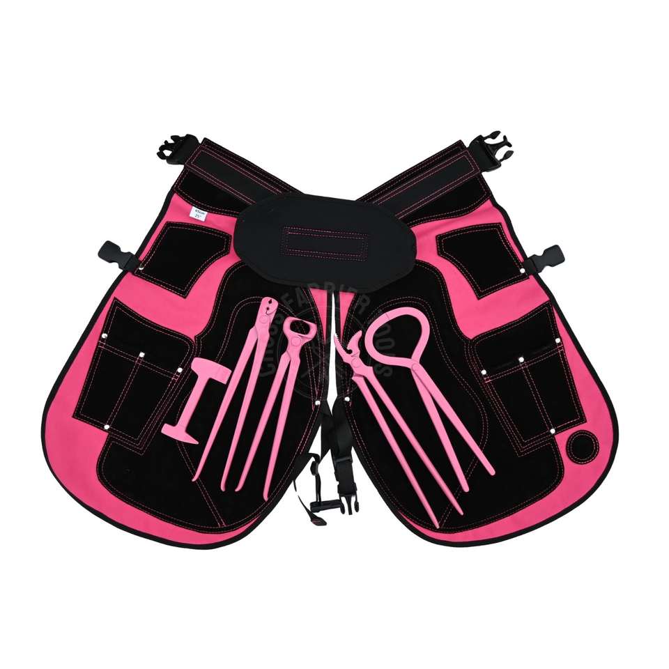 Keywords:farrier tool kit, pink farrier apron, leather farrier chaps