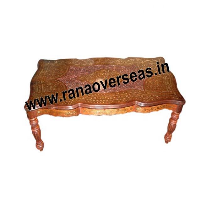 Nom du produit:Table centrale en bois sculpté en laiton incrusté