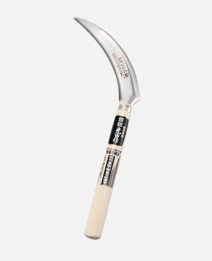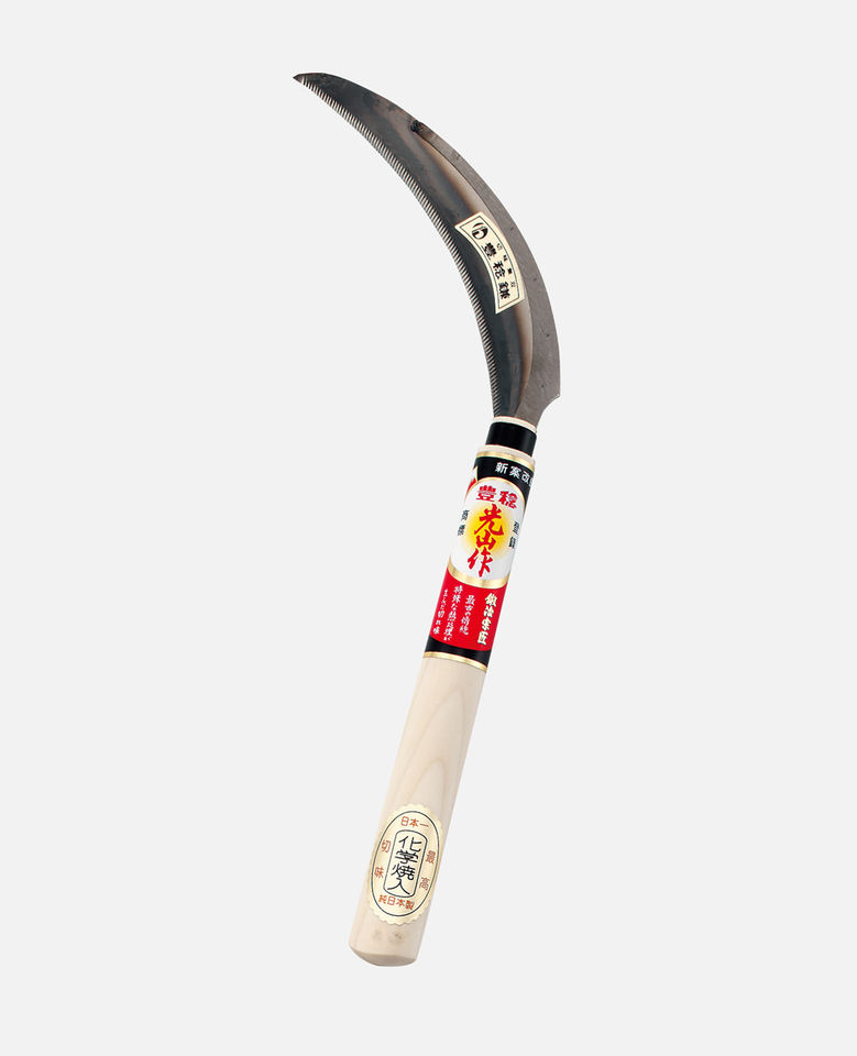 Faucille japonaise Hounen de haute qualité avec lame en acier japonais tranchante, manche en bois, fabriquée au Japon
