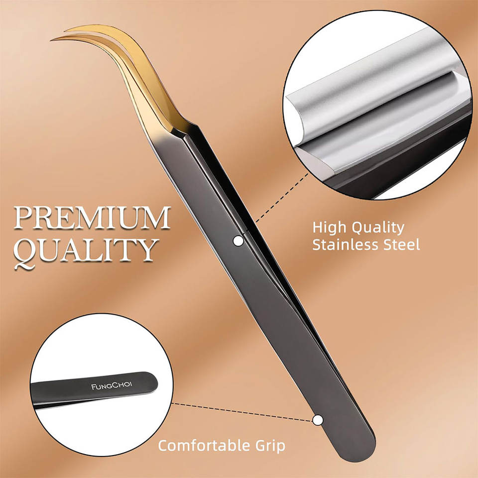 High Quality Hyperbolic Stainless Steel Eyelash Tweezers Beauty Tools with Curved & Slanted Tips for Artificial Eyelashes