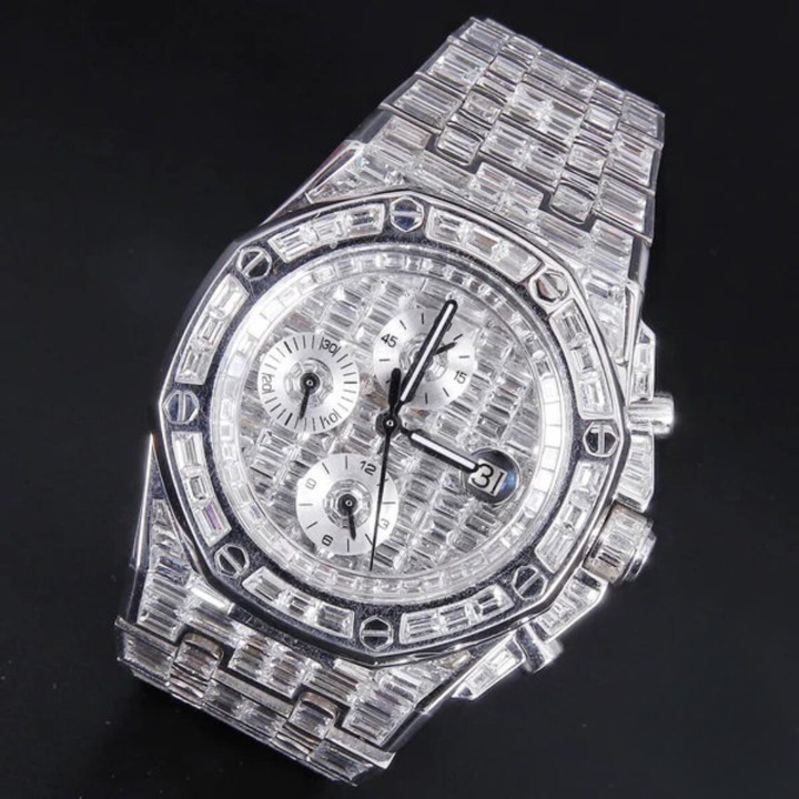 Montre en moissanite glacée VVS qui passe le testeur de diamant.