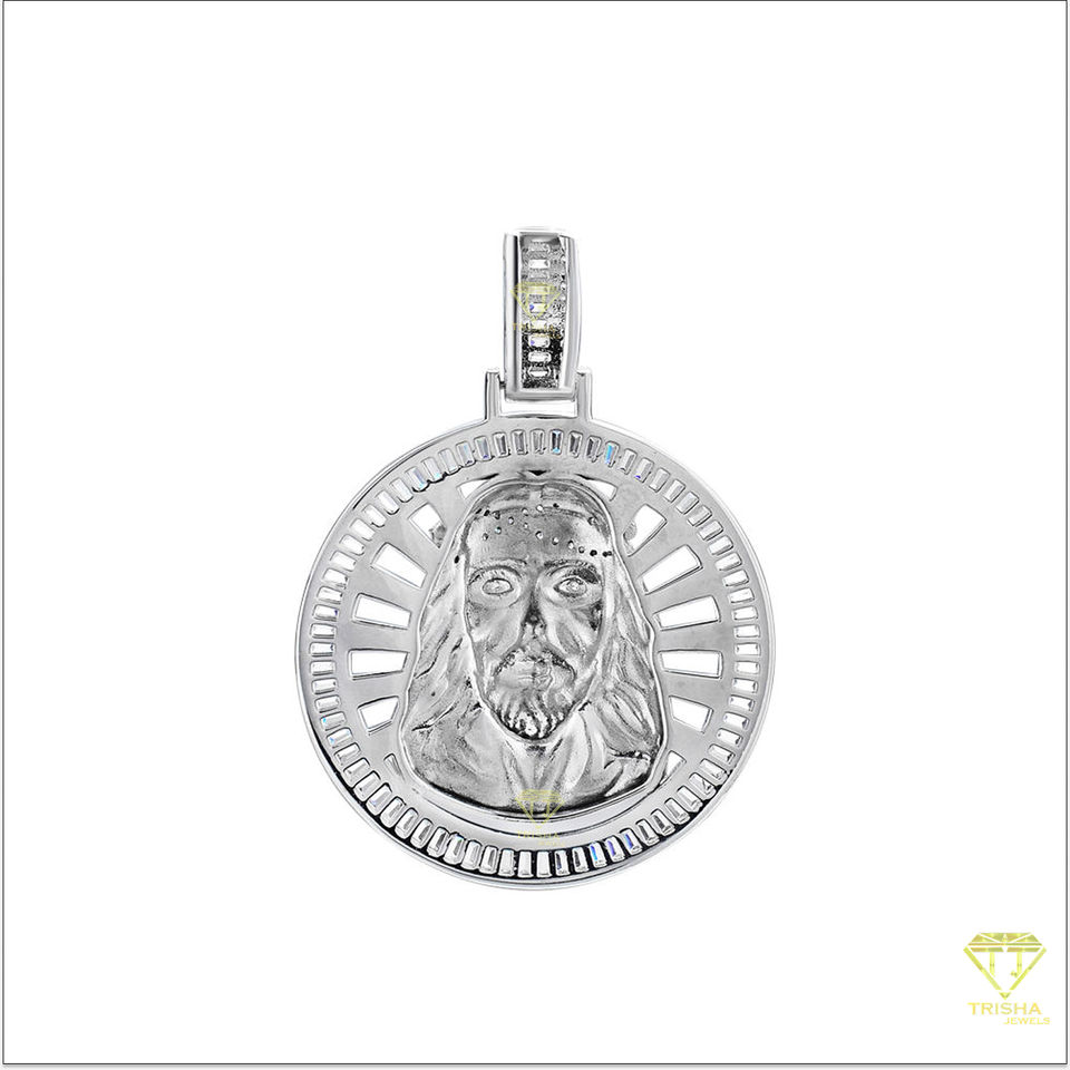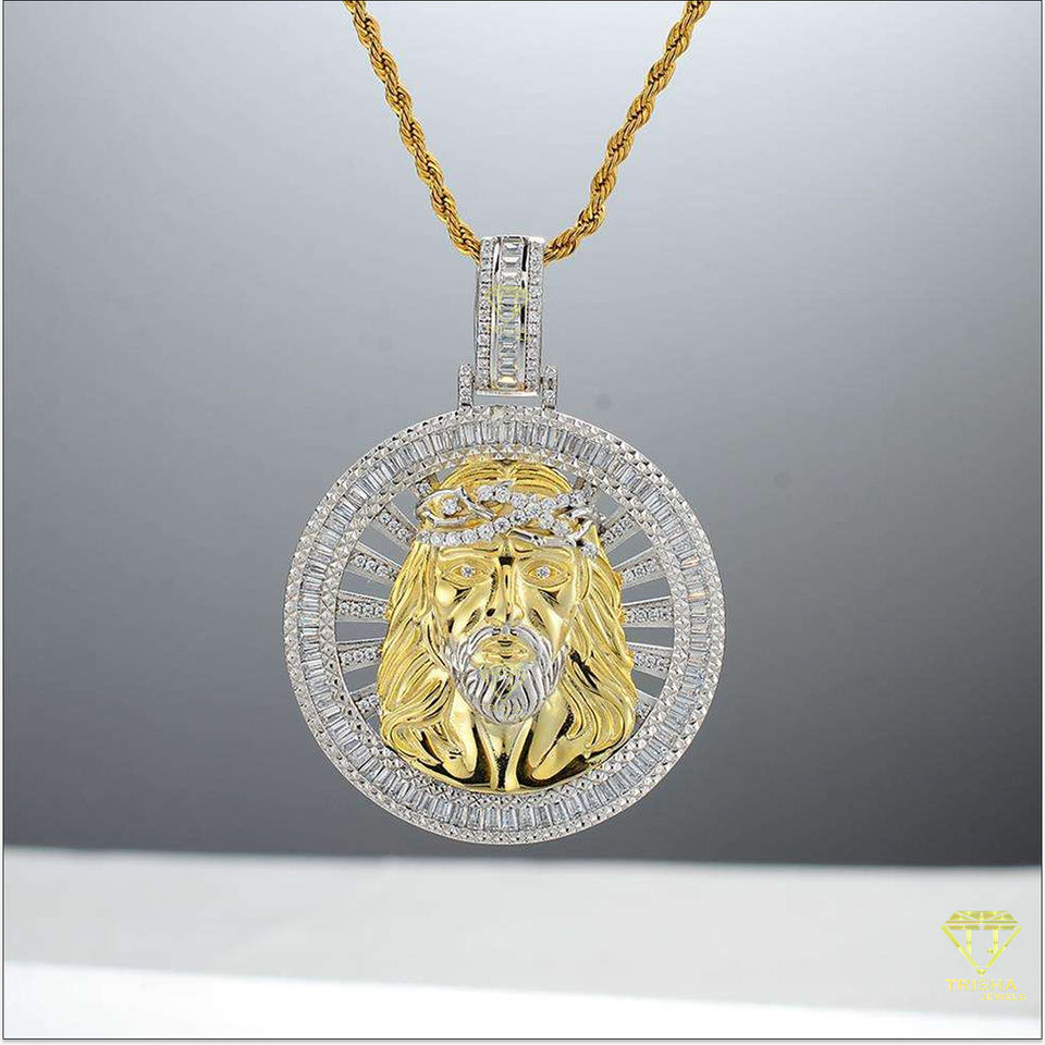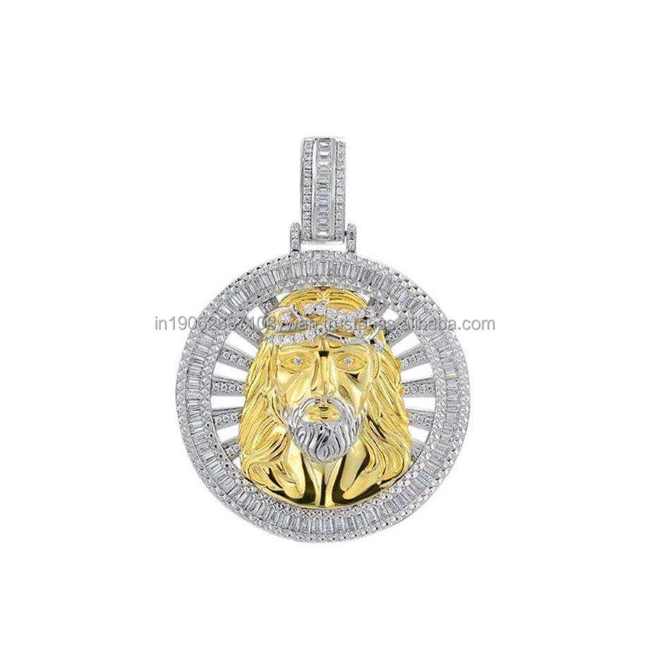 Pendentif tête de Jésus glacé de haute qualité Collier religieux chrétien en croix Moissanite en argent sterling 925