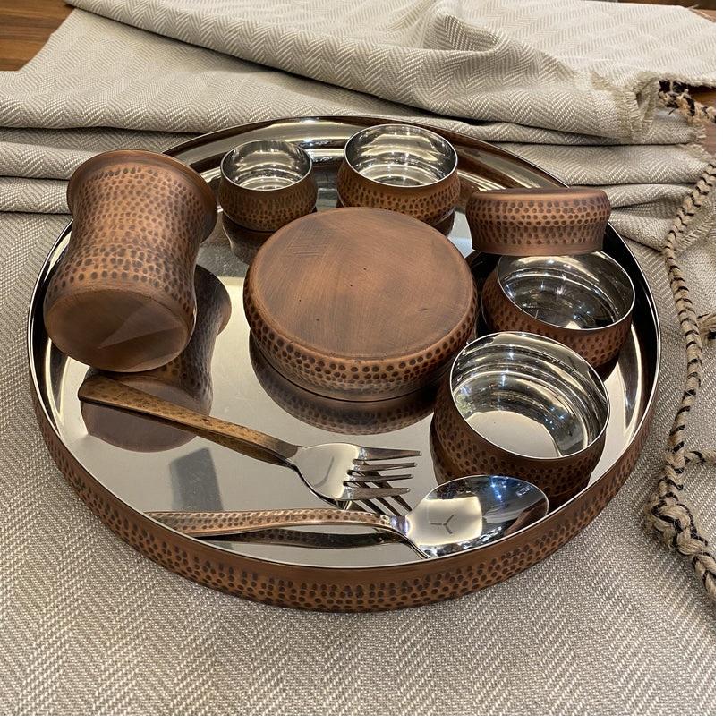 High Quality Indian Pure Copper Finish Thali Set for Dining Serving Tableware Indian Traditional Premium Kansa Bronze ThaliSet