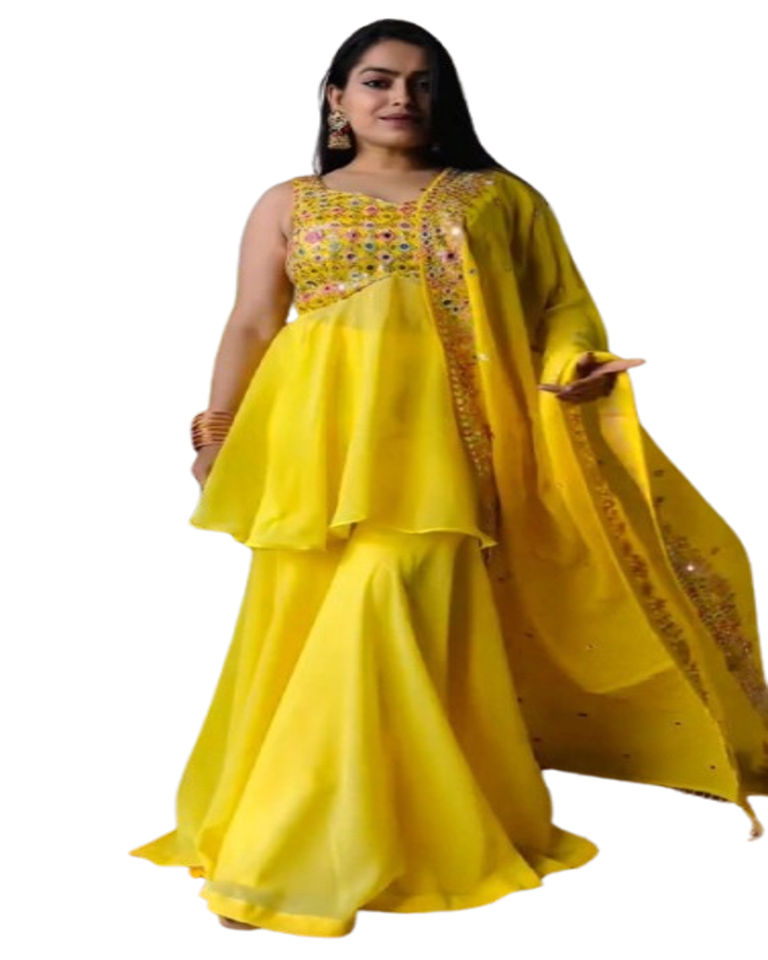 Haute qualité indien Style traditionnel Georgette tissu broderie séquence travail Plazzo haut ensemble disponible Salwar robes indiennes