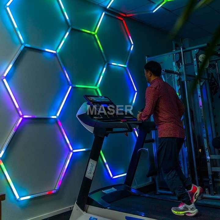 Éclairage intérieur de haute qualité moderne 100V-240V hexagone rvb lumières pour Garage Gym salle de jeux 8 grille nid d'abeille lumières