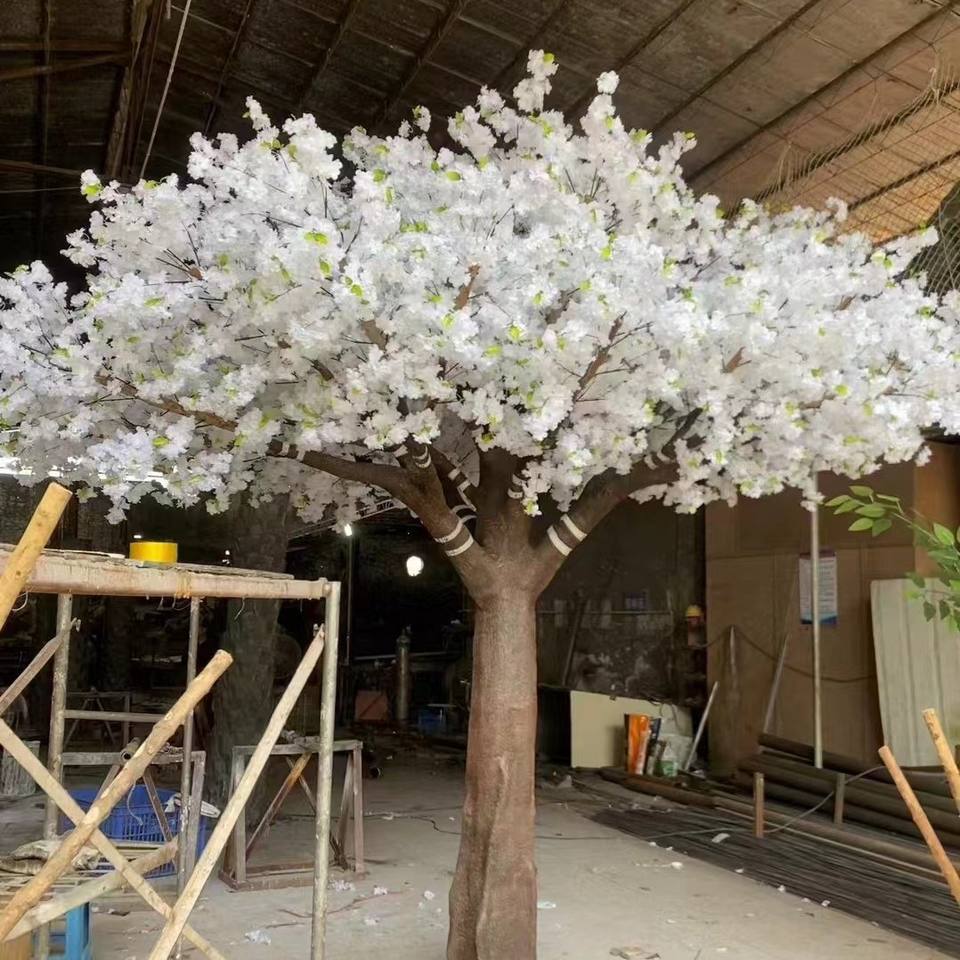 Haute qualité intérieur mariage décoratif grand soie Sakura fleur arbre artificiel blanc couleur cerisier fleurs arbres haut de gamme cerisier