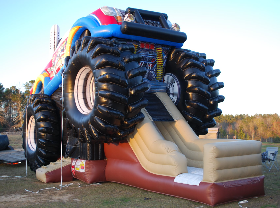 Camion monstre gonflable de haute qualité, maison de rebond avec glissière sèche, château gonflable, combinaison de rebond pour les affaires de fête