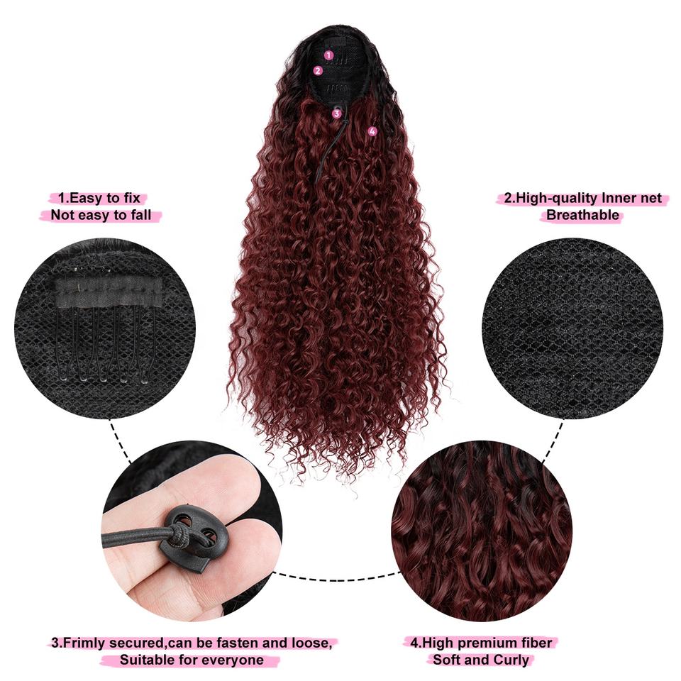 Queue de Cheval à Cordon Synthétique Ondulée Profonde de Haute Qualité, Faux Chignon Afro Crépu Bouclé, Extension de Cheveux Instantanée pour Femme Noire, Vente en Gros