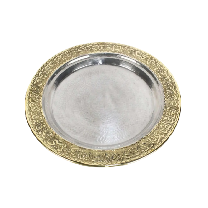 Assiette ronde en laiton islamique de haute qualité avec gravure Nickel et finition polie Pour utilisation en cuisine et assiette décorative