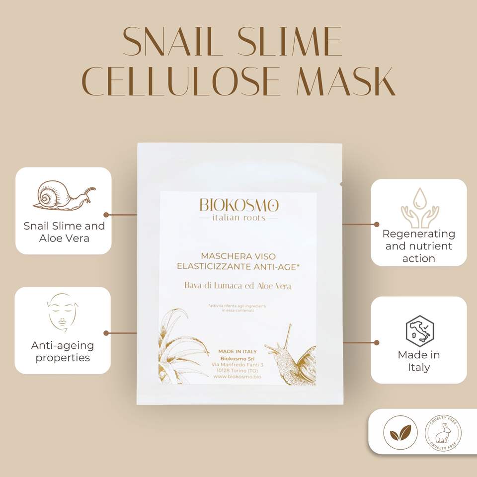 Italian Bio Snail Slime Cellulose Mask 15ml Premium Sheet Form pour revitaliser et raffermir l'éclat de la jeunesse