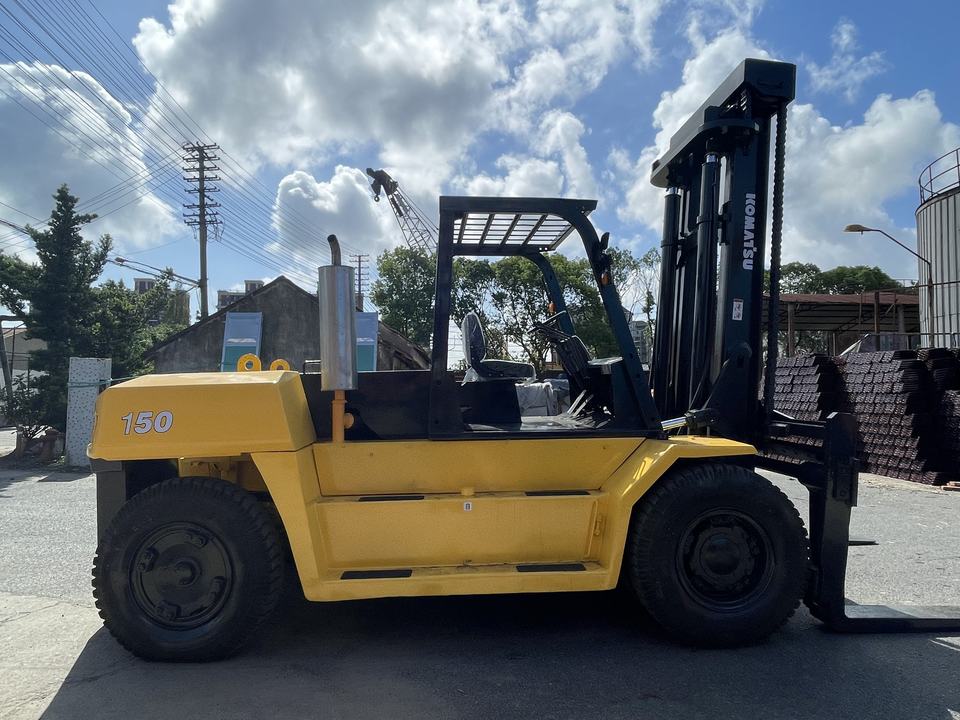 Chariot élévateur diesel d'occasion de 15 tonnes, de haute qualité, avec moteur japonais importé d'origine, Komatsu TCM HELI, contrepoids, d'occasion
