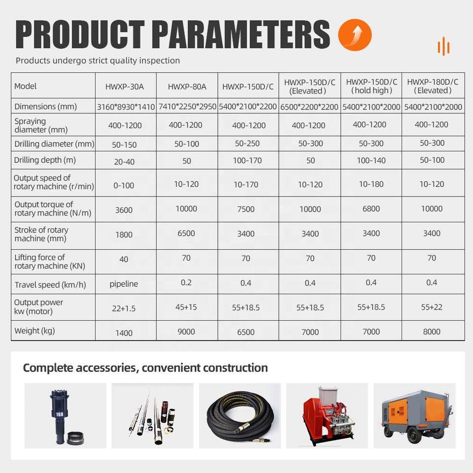 Équipement de forage pour jet de béton, protection des pentes de puits et construction de voies.
